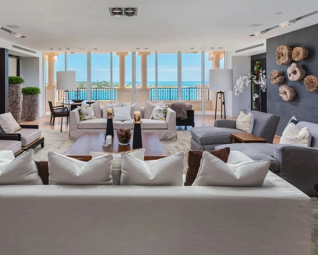 Spanning over 7,000 sq. ft. of impeccably designed interiors, the residence features grand entertaining spaces, sunlit lounges, and artfully balanced private quarters, all complemented by 1,370 sq. ft. of panoramic terraces overlooking the endless Atlantic horizon.