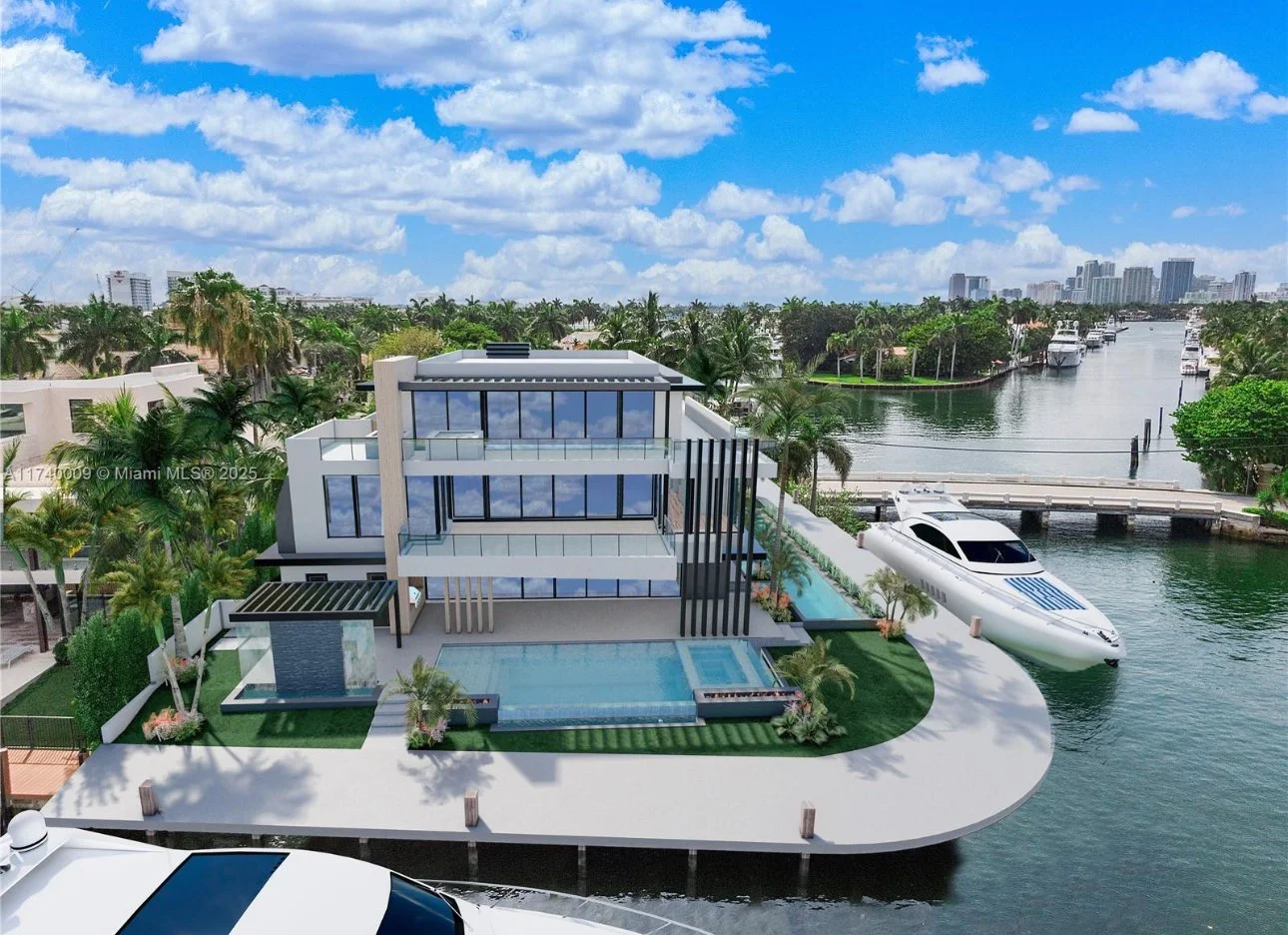 A modern 3-story masterpiece with sweeping Intracoastal views, expansive glass walls, and deep-water dockage.