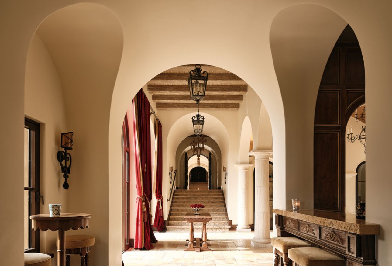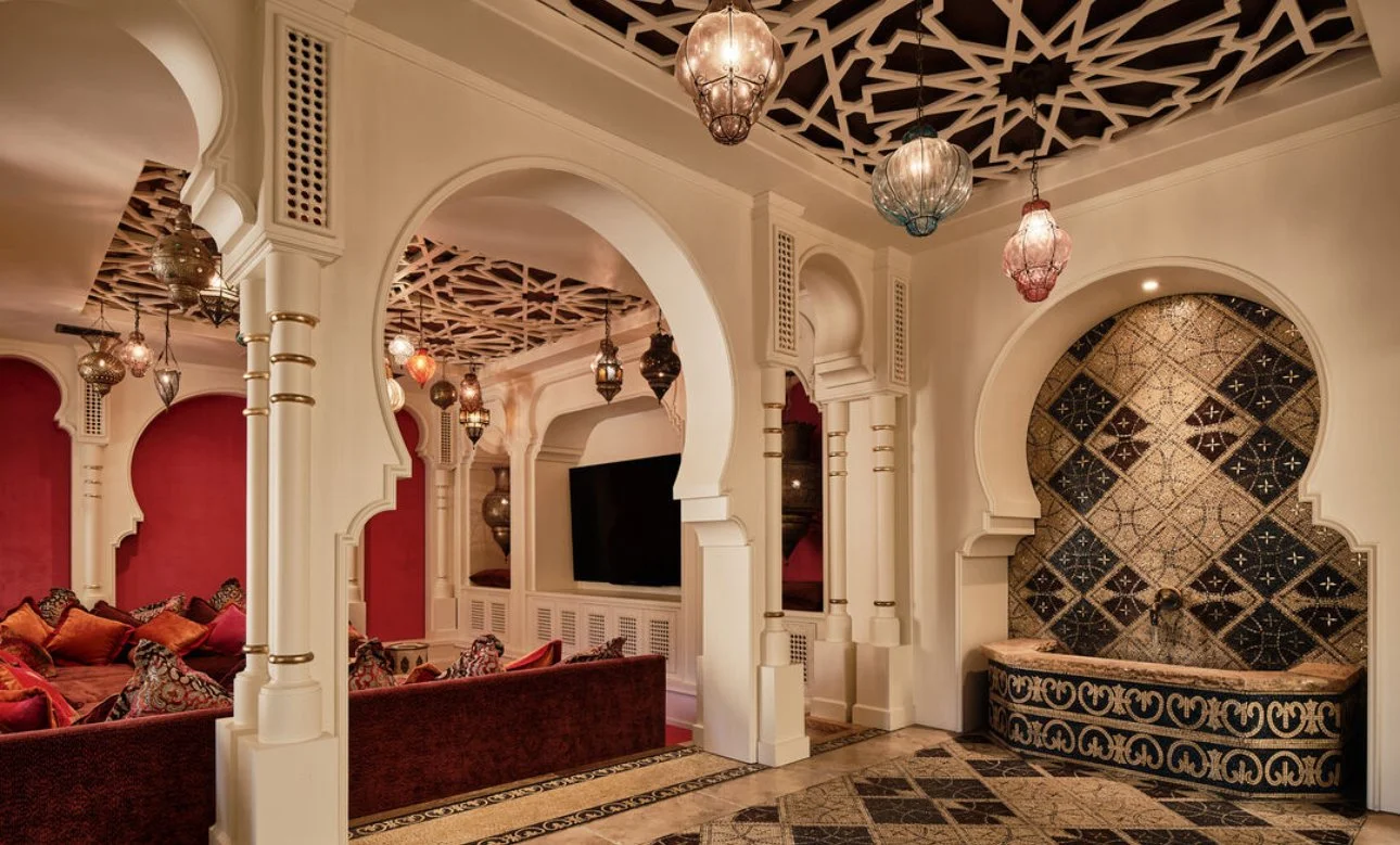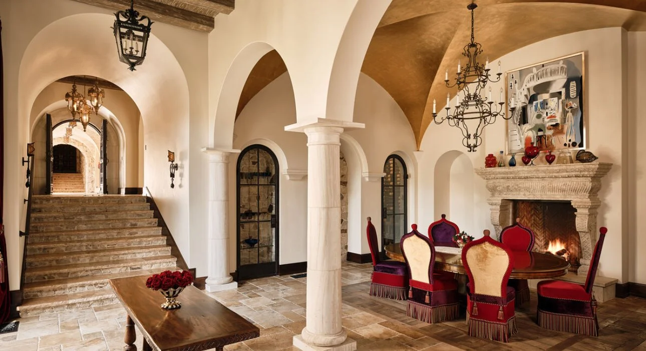 Crafted with precision and poetic detail, every arch, column, and stone façade evokes the spirit of old-world palaces while embracing contemporary sophistication. Grand living spaces framed by soaring ceilings open toward sweeping golf course views, blurring the line between interior grandeur and nature’s calm. Each room is curated as an expression of quiet opulence, from sunlit galleries to intimate lounges designed for serene contemplation.