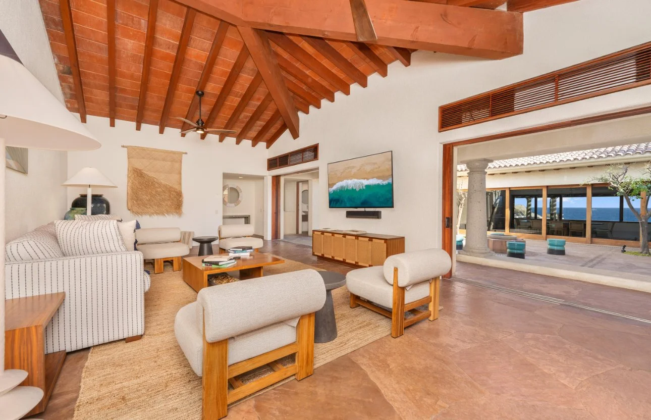 Here, time slows. Morning waves whisper against the rocks, evenings unfold under a veil of gold, and the world beyond disappears into the calm. Casa Buenaventura is not a home, it’s a soul anchored in the sea.