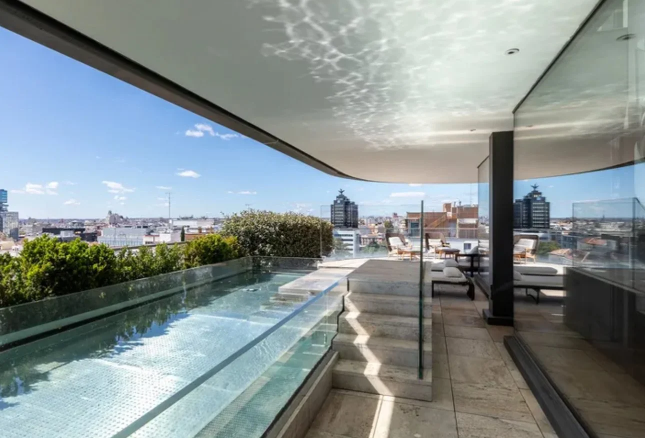 Beyond the residence itself, residents enjoy five dedicated parking spaces, 24-hour concierge and security, and access to world-class communal amenities, including an indoor pool, rooftop infinity pool, spa, gym, sauna, and Turkish bath. Every detail embodies refinement, privacy, and prestige, a home crafted for those who seek the absolute best in the heart of Madrid.