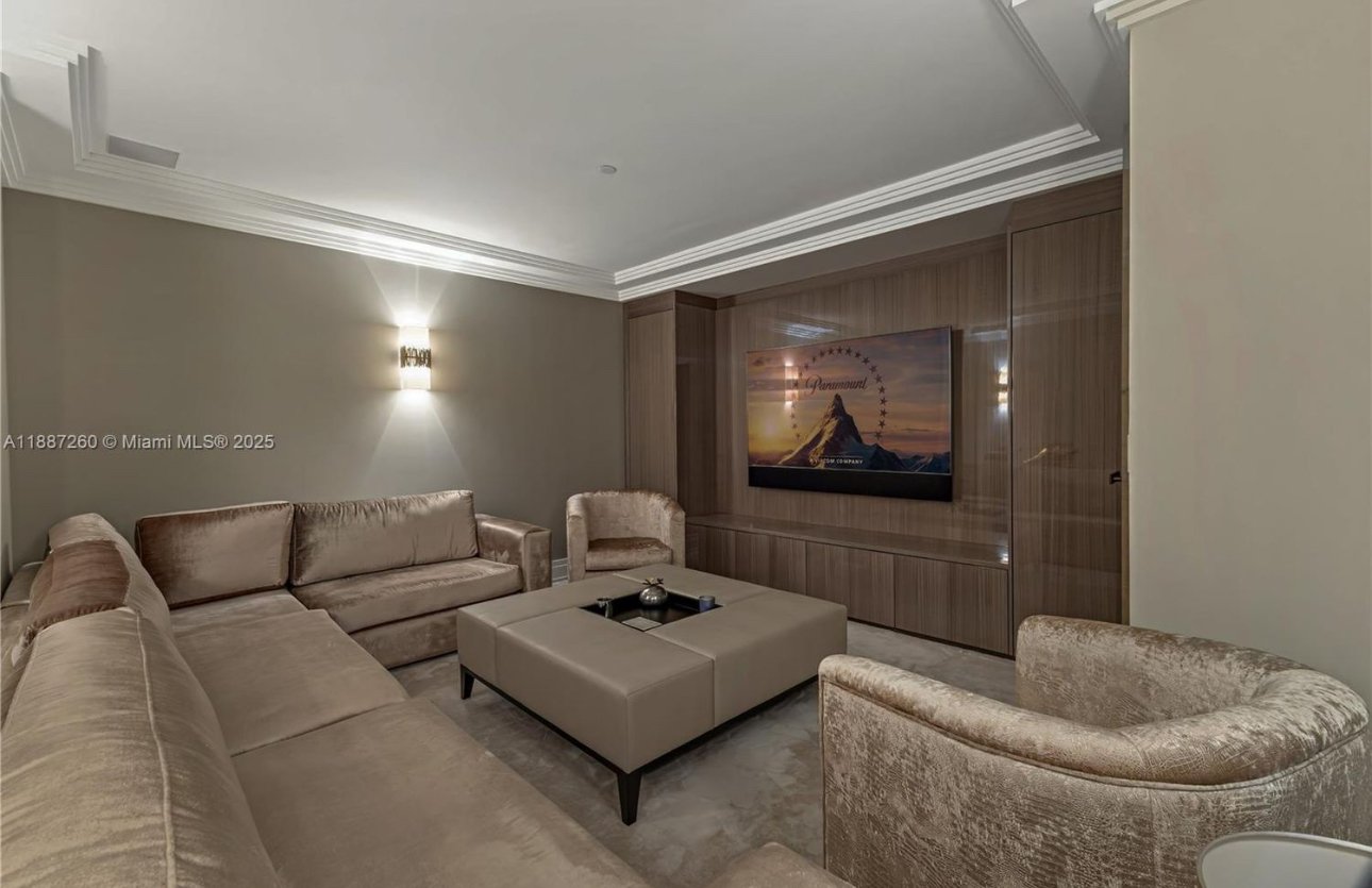 Inside, design meets indulgence: a floating glass staircase anchors the grand living space, while floor-to-ceiling panels of crystal-clear glass invite the ocean breeze and golden glow of South Florida sun. The bespoke chef’s kitchen, fitted with Wolf appliances, dual SubZero refrigerators, a Miele coffee station, and a temperature-controlled wine gallery, defines gourmet sophistication.