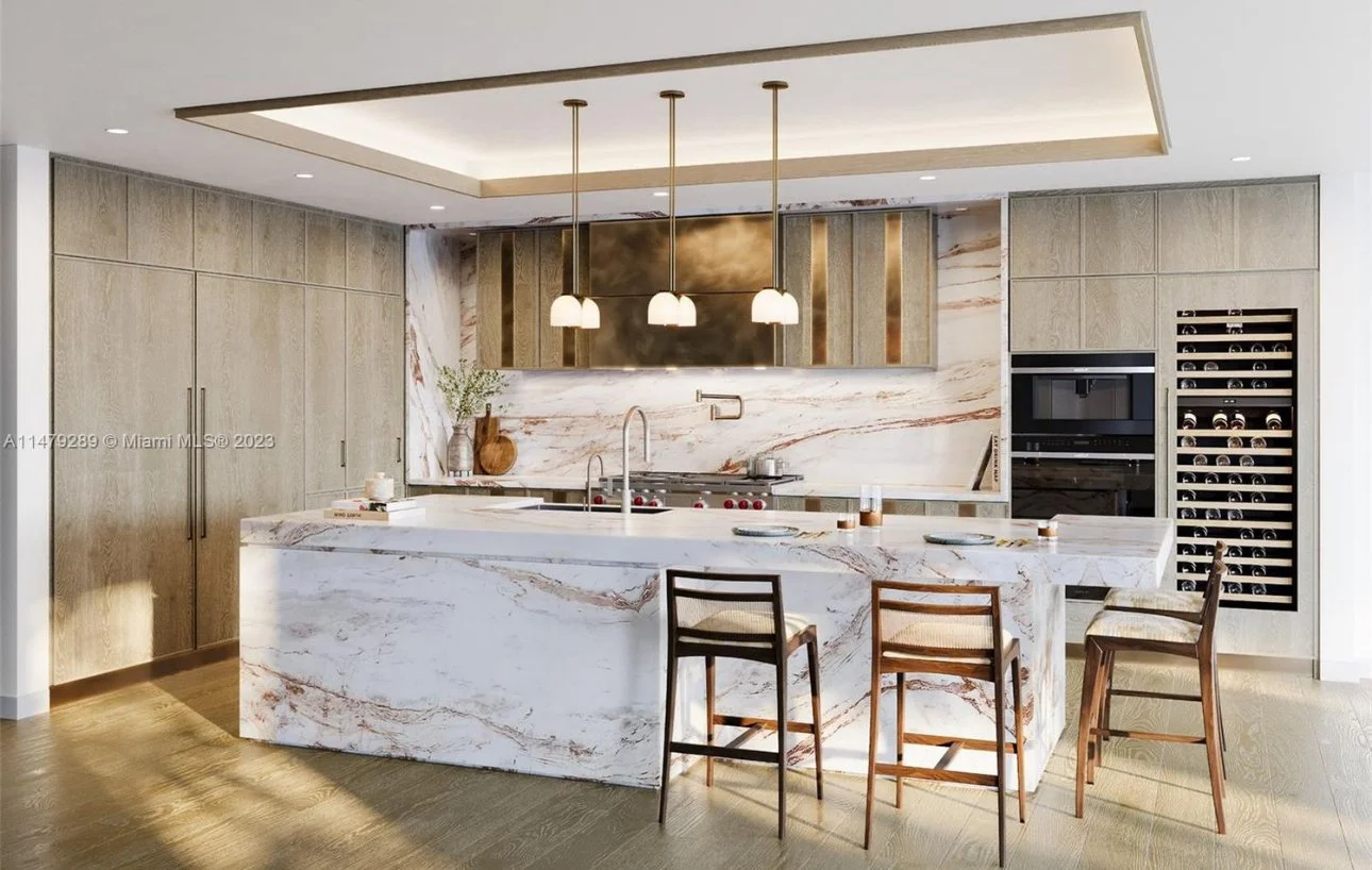 Expansive 15-foot-deep terraces frame panoramic views of the ocean, bay, and skyline, while private elevator foyers lead into living spaces of absolute discretion. From showpiece kitchens to grand bayview primary suites, every detail has been envisioned as an heirloom of modern refinement.