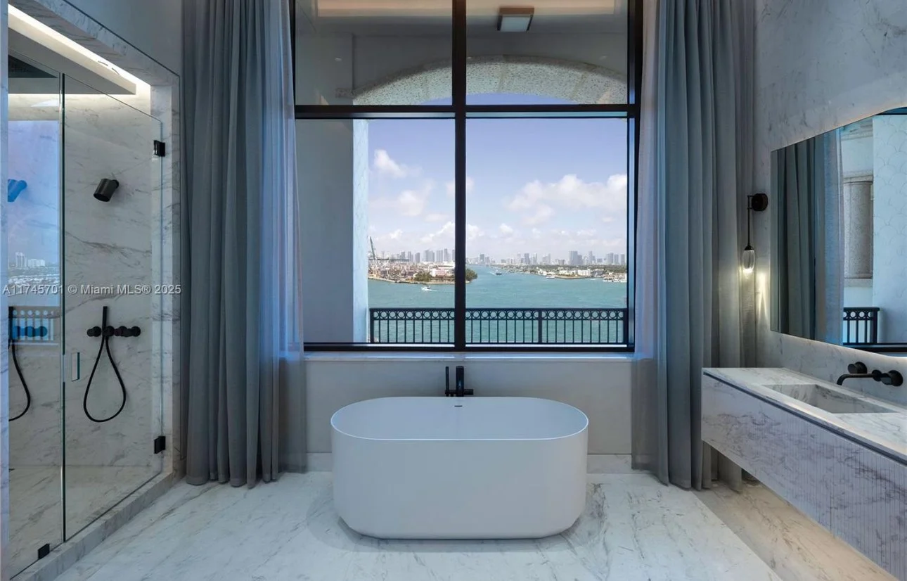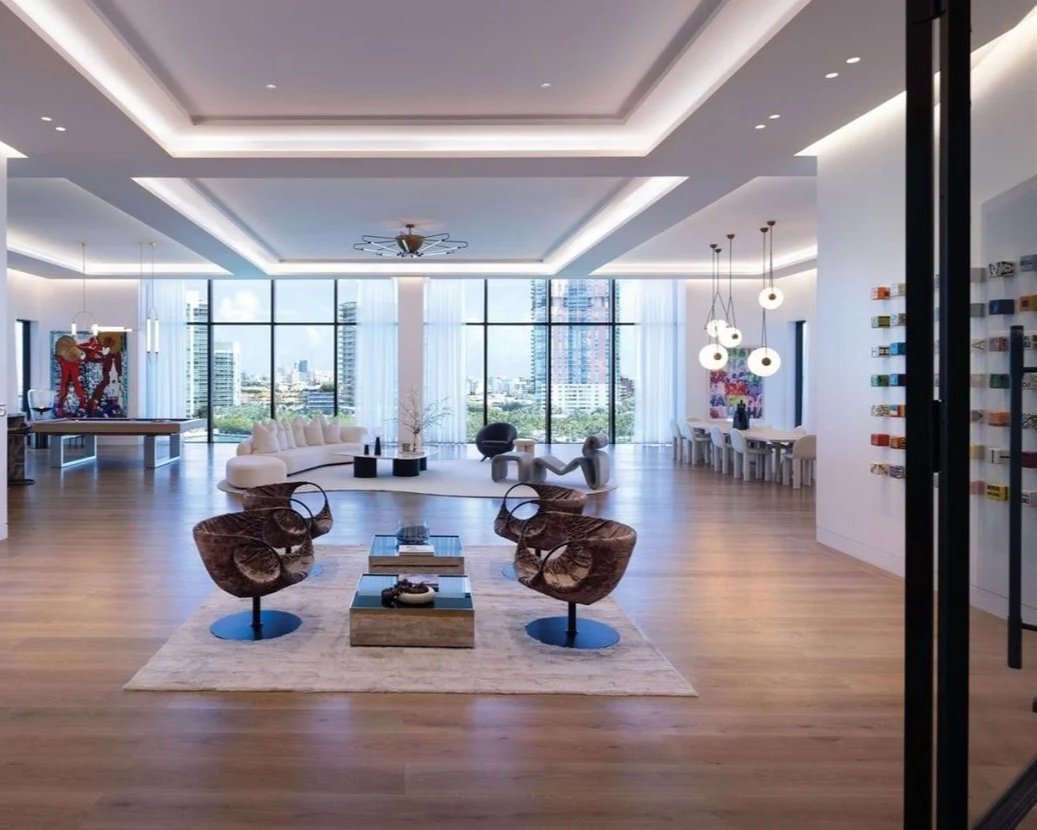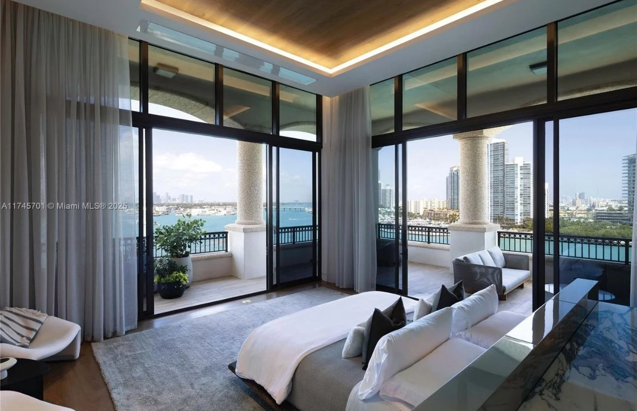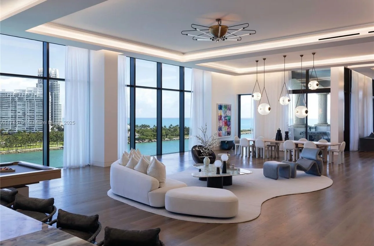 Floating above the horizon, The Celestial Penthouse reigns as the pinnacle of Fisher Island’s sky estates, a full-floor architectural triumph where 10,000 square feet of living space merge effortlessly with nearly 2,000 square feet of panoramic terraces. With five bedrooms, five full and three half baths, every room frames sweeping views of the Atlantic Ocean, Biscayne Bay, and the glittering Miami skyline, a panorama of motion and light that transforms daily into art.