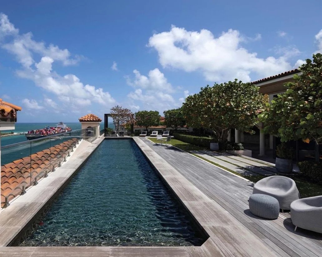 Crowning the estate, a 7,300+ square-foot rooftop sanctuary unfolds like a private resort in the sky, complete with a zero-edge heated pool, spa, dual wet bars, and a summer kitchen designed for entertaining beneath the stars. Every corner radiates sophistication, from the cabana retreat and deeded beach access to the exclusive membership at the Fisher Island Club, granting access to championship golf, a racquet club, marinas, and a world-class beach club.