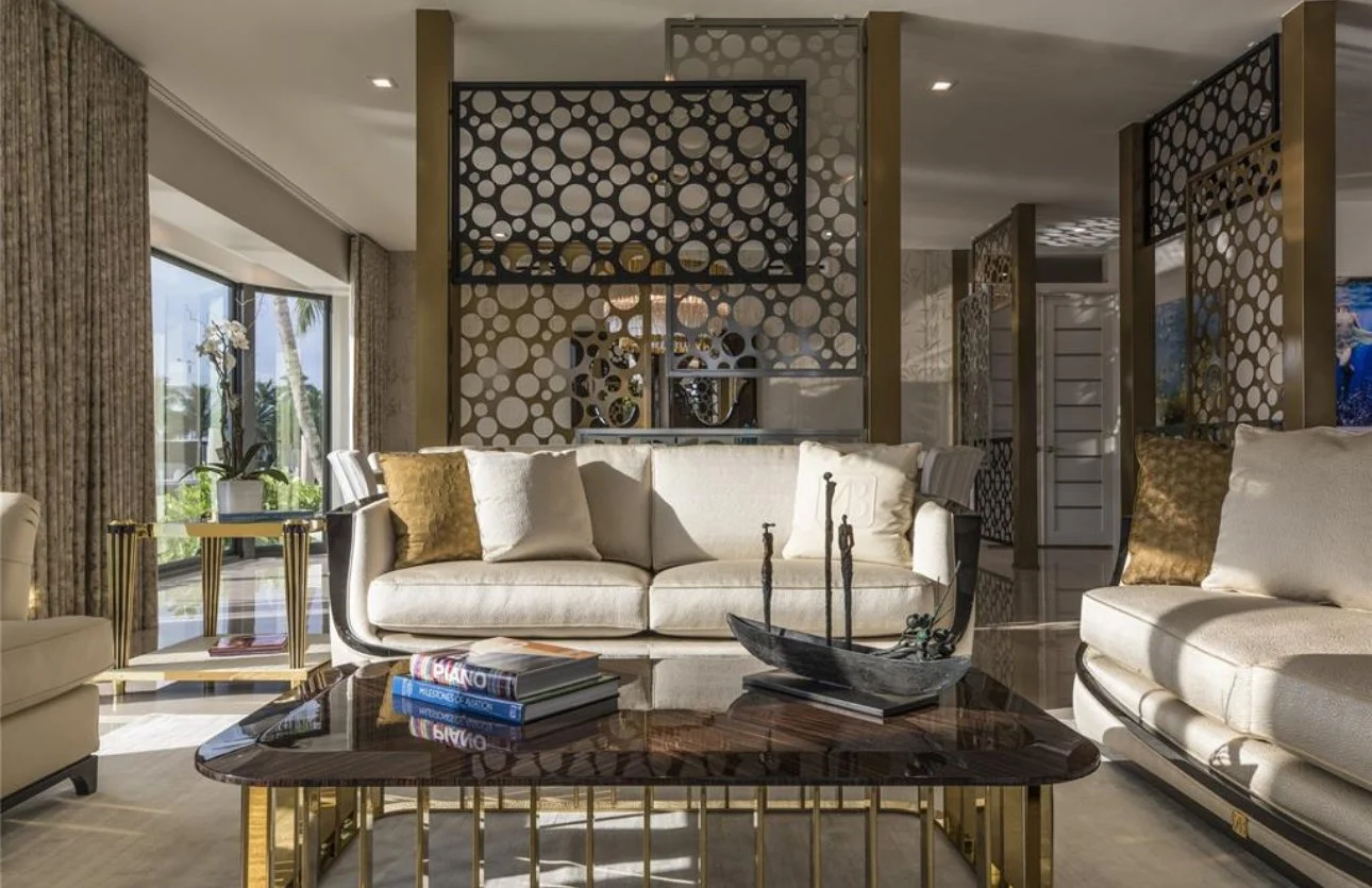 Interiors by Katia Bates unfold like a curated gallery, blending bespoke craftsmanship with the intimacy of a true home. Grand salons open to the river’s edge, while dual chef’s kitchens and formal entertaining spaces elevate gatherings to moments of artistry.