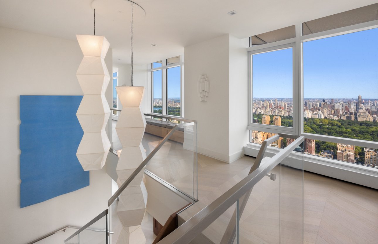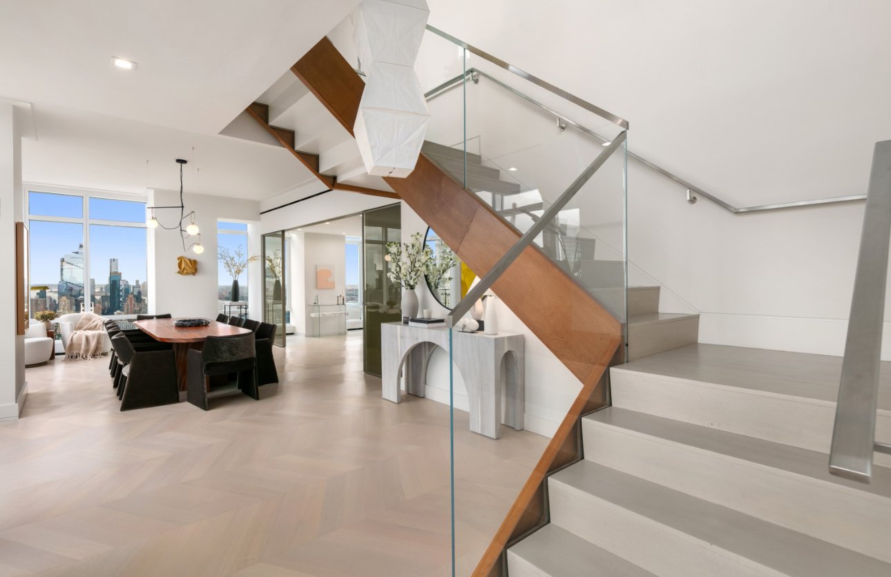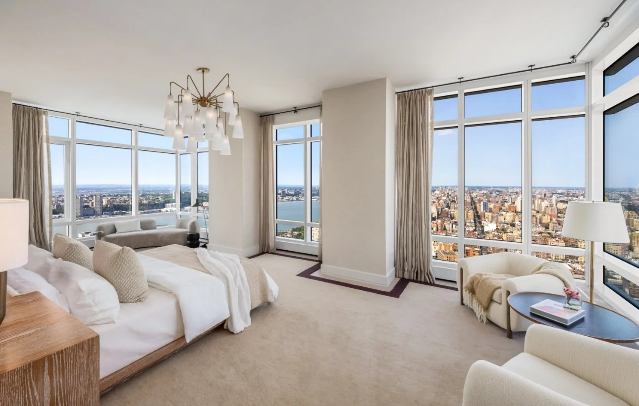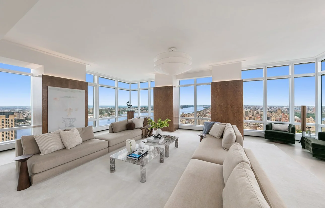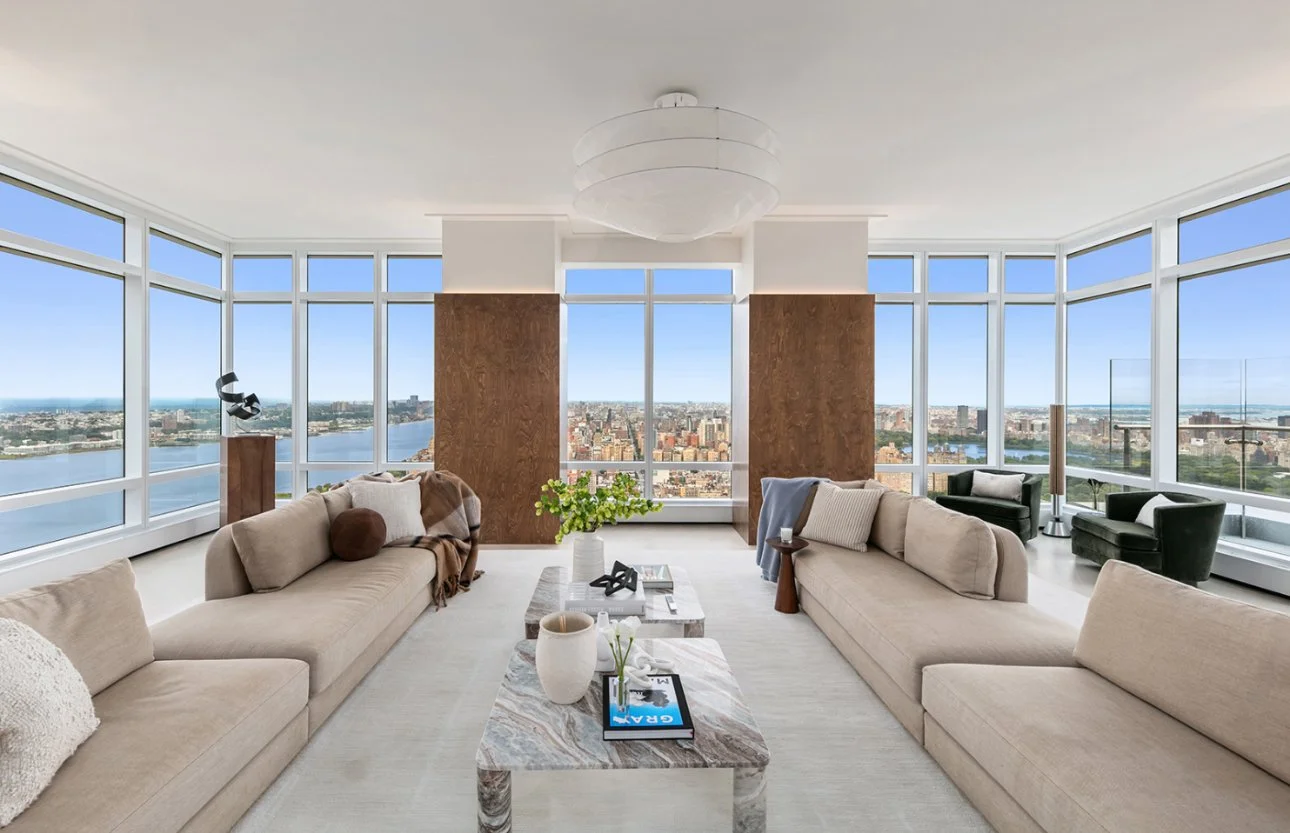 Designed for those who command the extraordinary, this four-bedroom, five-bath architectural statement spans the top three floors of one of Manhattan’s most exclusive towers. Walls of glass rise 14 feet high, framing cinematic views of Central Park, the East River, and the glittering New York skyline in every direction.