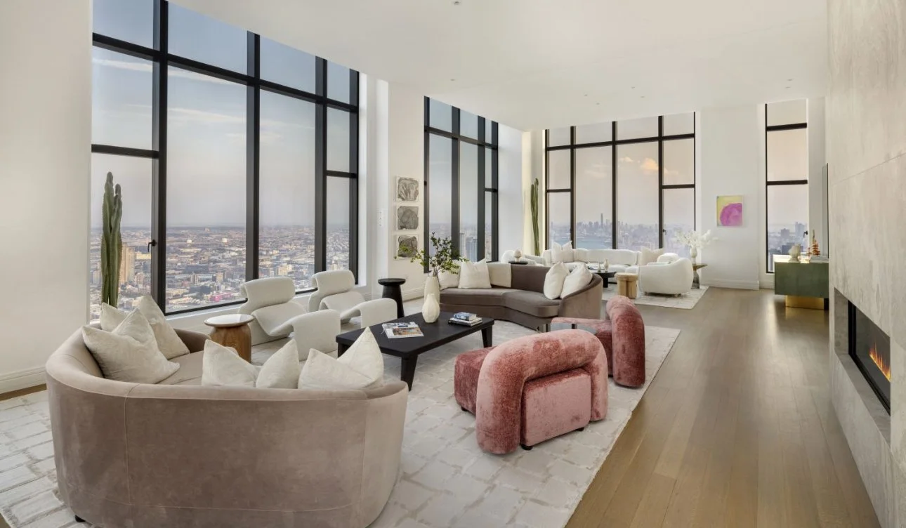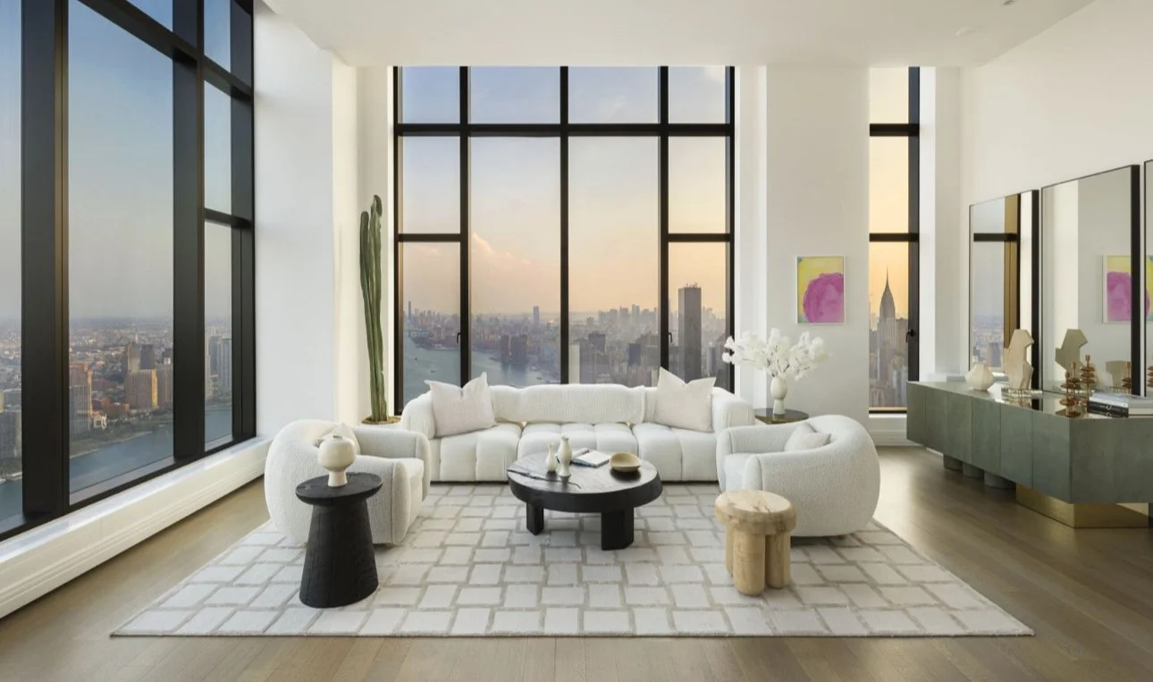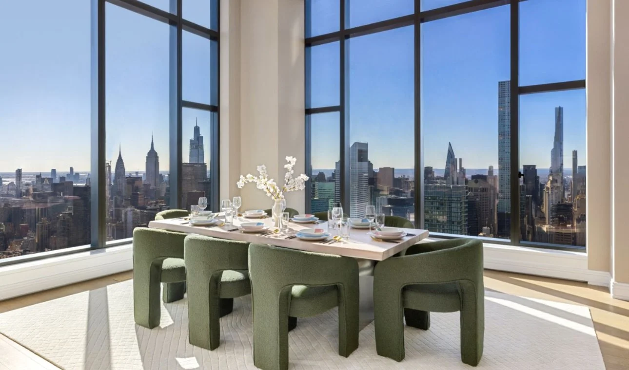 Rising high above Manhattan, this duplex penthouse is a statement of unrivaled scale and artistry. Spanning over 9,100 sq. ft. across two full floors, the residence offers sweeping, uninterrupted 360-degree views of the skyline, rivers, and city landmarks, immersing every room in light and drama. Designed for the connoisseur of modern luxury, the interiors feature custom Italian cabinetry, marble accents, and soaring ceilings, creating a home that balances monumental proportions with refined intimacy. A double-height loggia opens to the cityscape, providing an elevated stage for entertaining or quiet contemplation above the metropolis.
