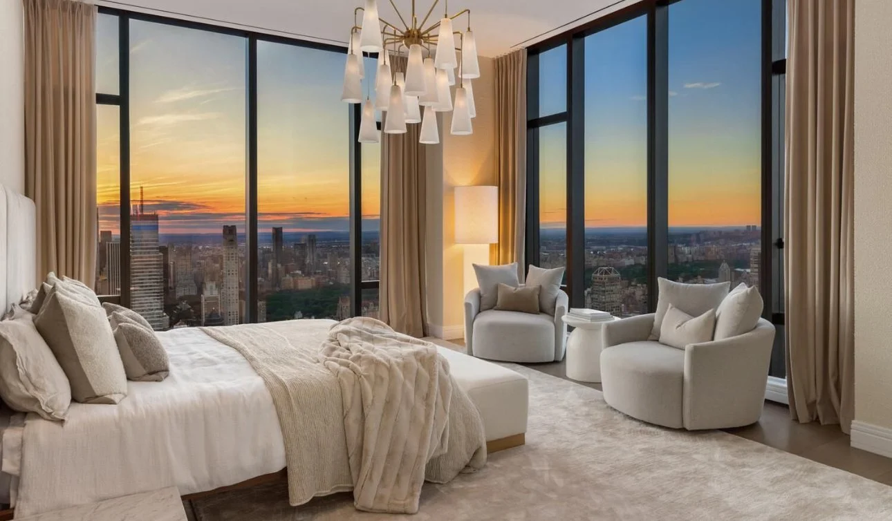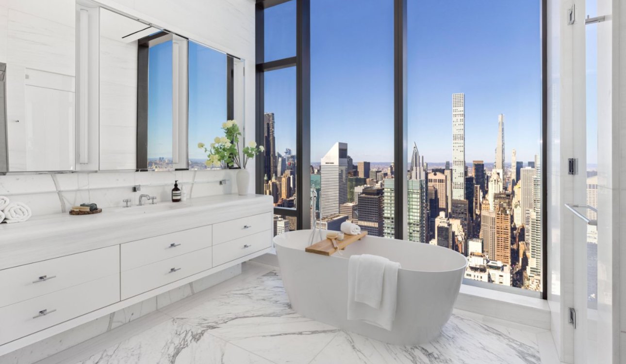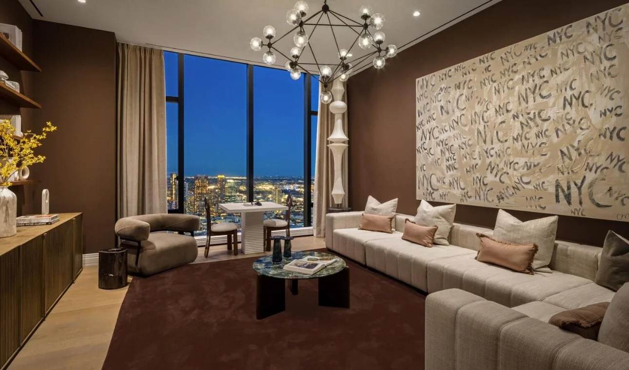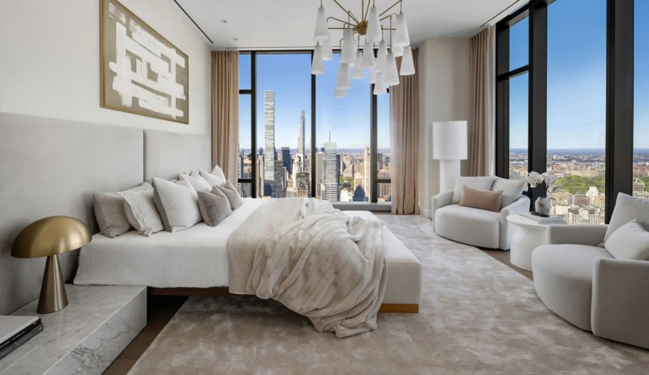 Rising high above Manhattan, this duplex penthouse is a statement of unrivaled scale and artistry. Spanning over 9,100 sq. ft. across two full floors, the residence offers sweeping, uninterrupted 360-degree views of the skyline, rivers, and city landmarks, immersing every room in light and drama. Designed for the connoisseur of modern luxury, the interiors feature custom Italian cabinetry, marble accents, and soaring ceilings, creating a home that balances monumental proportions with refined intimacy. A double-height loggia opens to the cityscape, providing an elevated stage for entertaining or quiet contemplation above the metropolis.