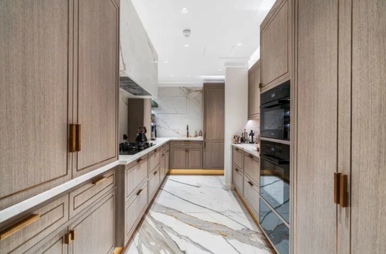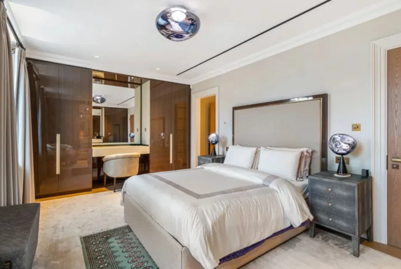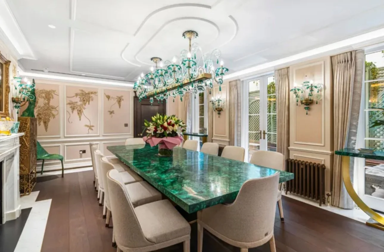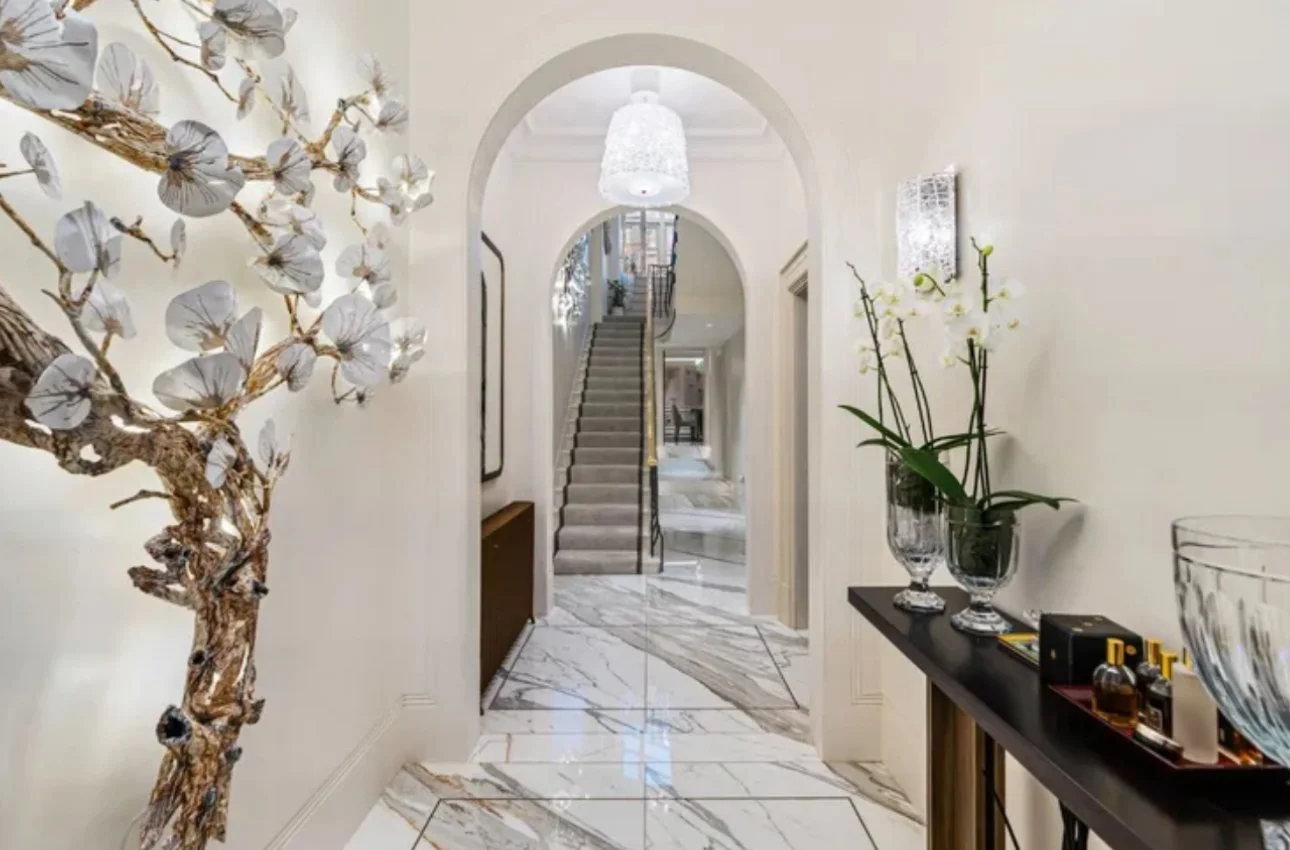Inside, two sweeping reception rooms open to views of sculpted greenery, while a statement bar invites evenings that linger long past midnight. The gourmet kitchen, crafted for both quiet mornings and lavish gatherings, flows seamlessly to a formal dining space opening onto a private courtyard, a rare oasis in the heart of the city.