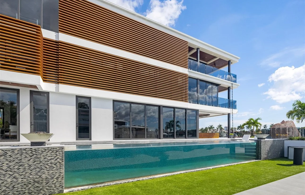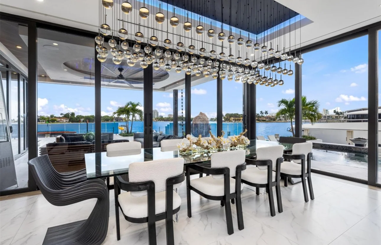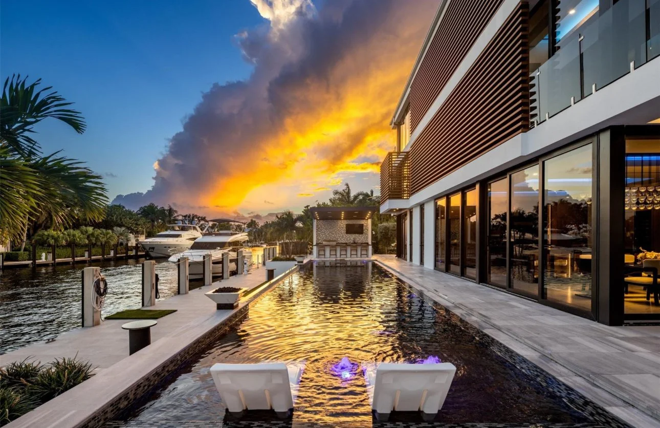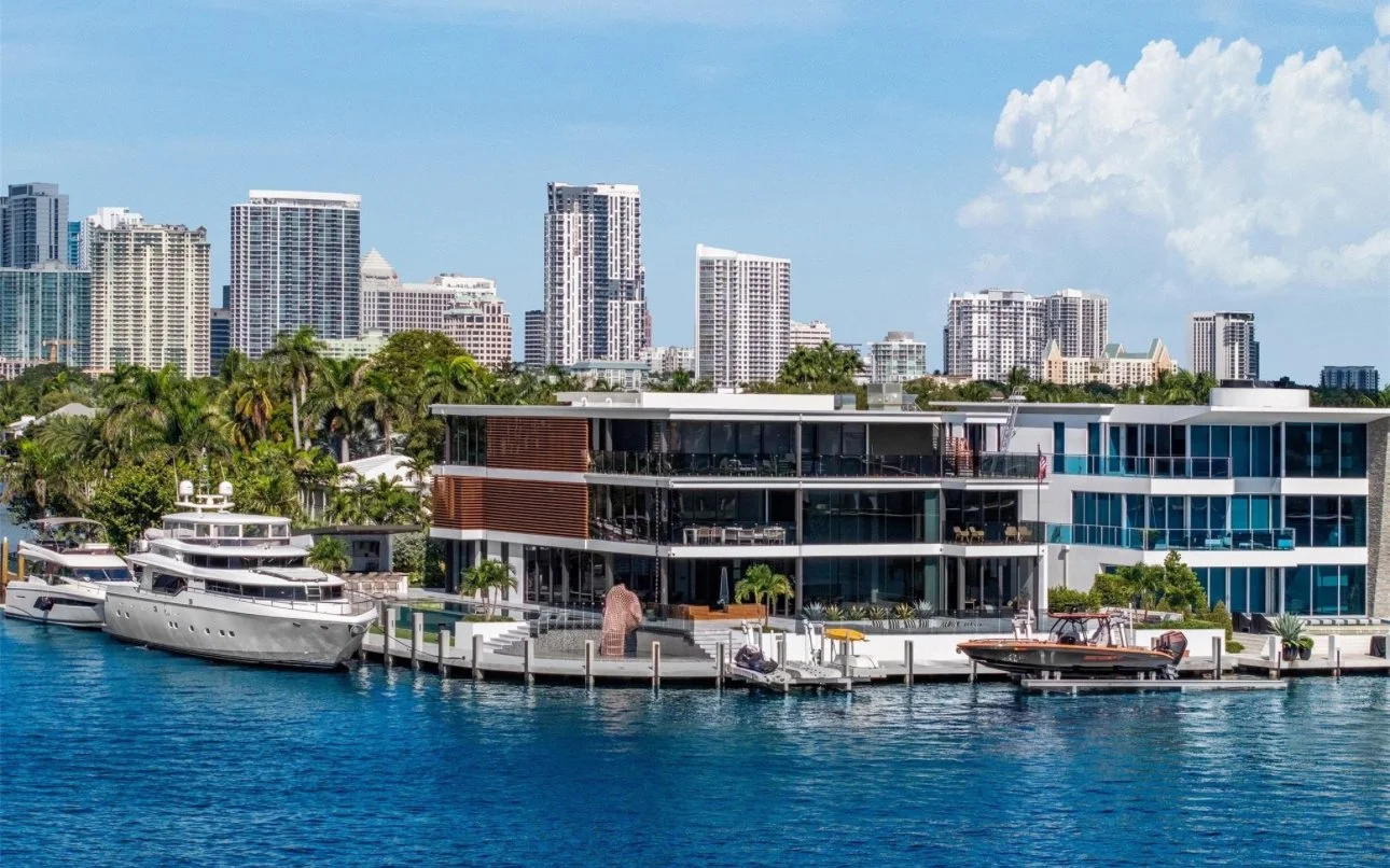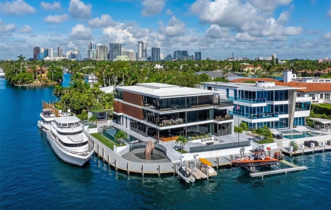 Located in the exclusive Rio Vista community, this spectacular waterfront point lot estate spans over 11,500 SFacross 7 bedrooms. Soaring ceilings, expansive glass walls, and private terraces offer sunrise and sunset views over the Intracoastal, creating a home that is both breathtaking and serene.
