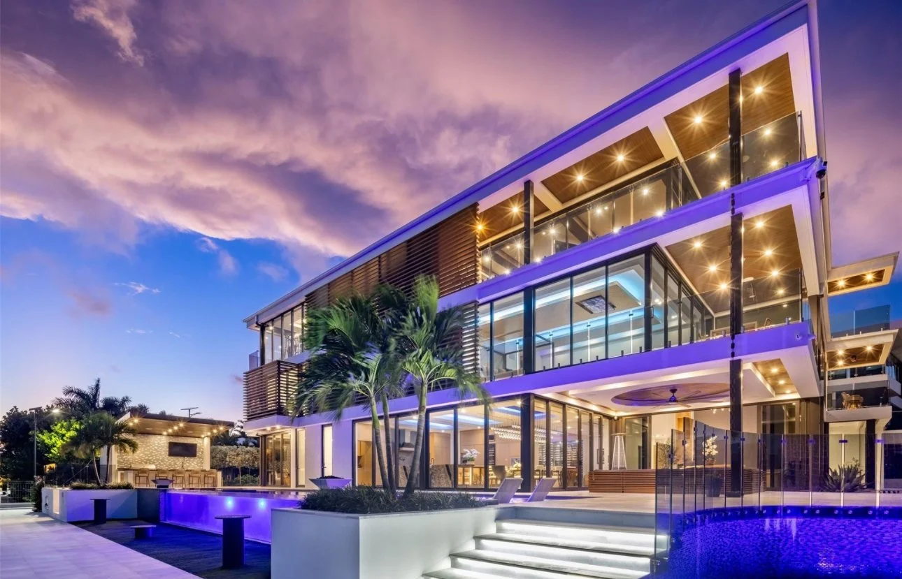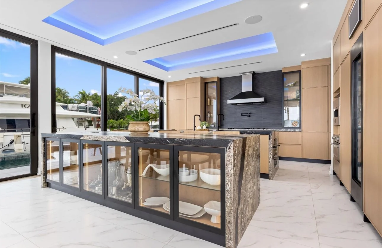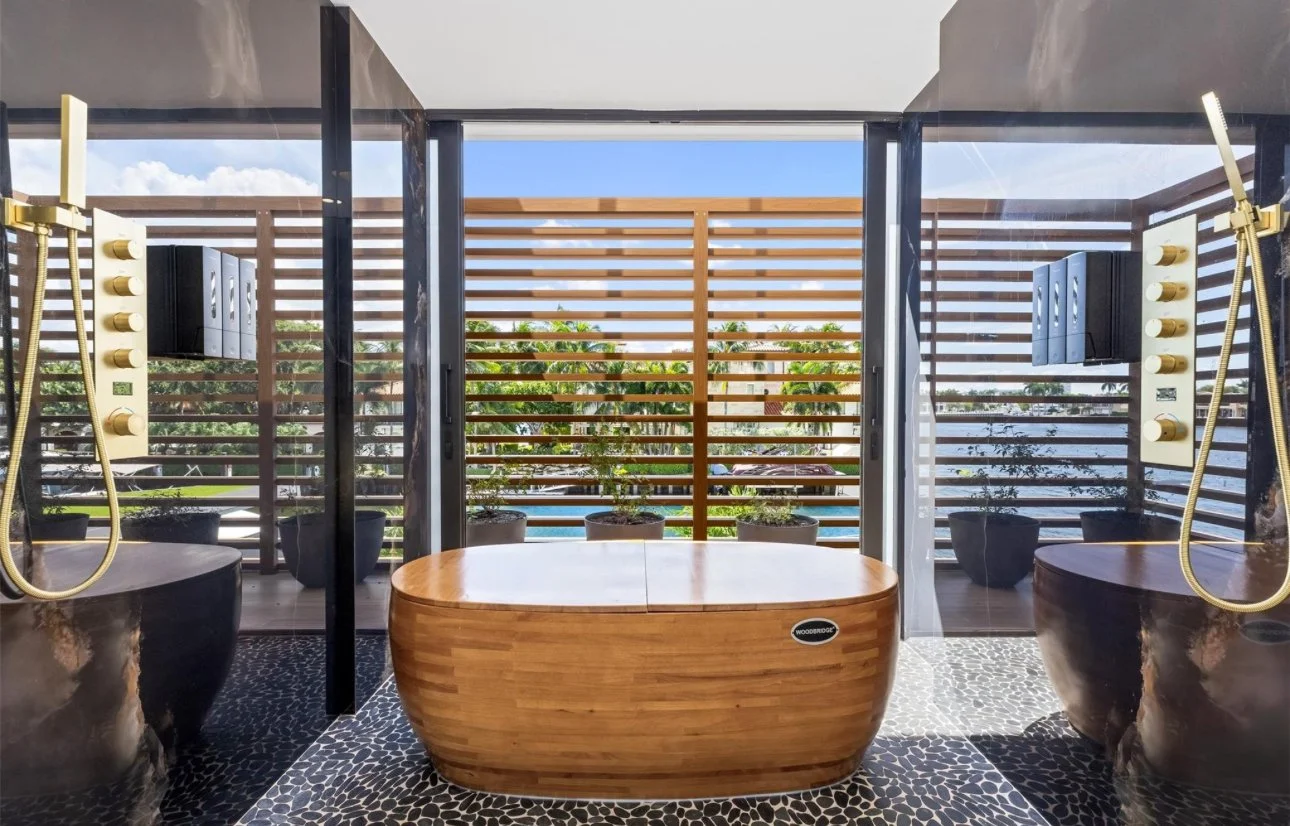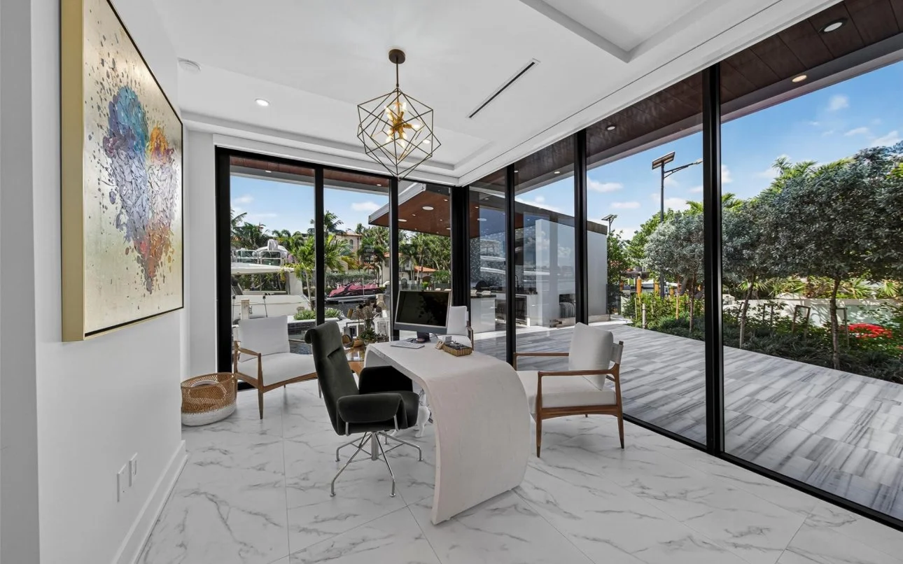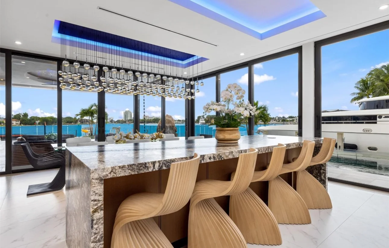 Located in the exclusive Rio Vista community, this spectacular waterfront point lot estate spans over 11,500 SFacross 7 bedrooms. Soaring ceilings, expansive glass walls, and private terraces offer sunrise and sunset views over the Intracoastal, creating a home that is both breathtaking and serene.