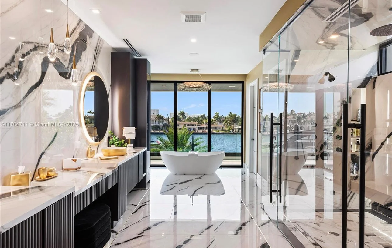 Primary Suite Sanctuary: Oversized suite with spa-like bathroom, private terrace, and stunning water views.